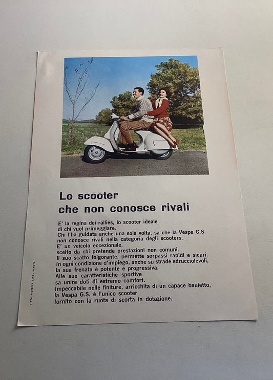 Vespa GS160 Mark 2 - Two Sided Original 1960s Leaflet